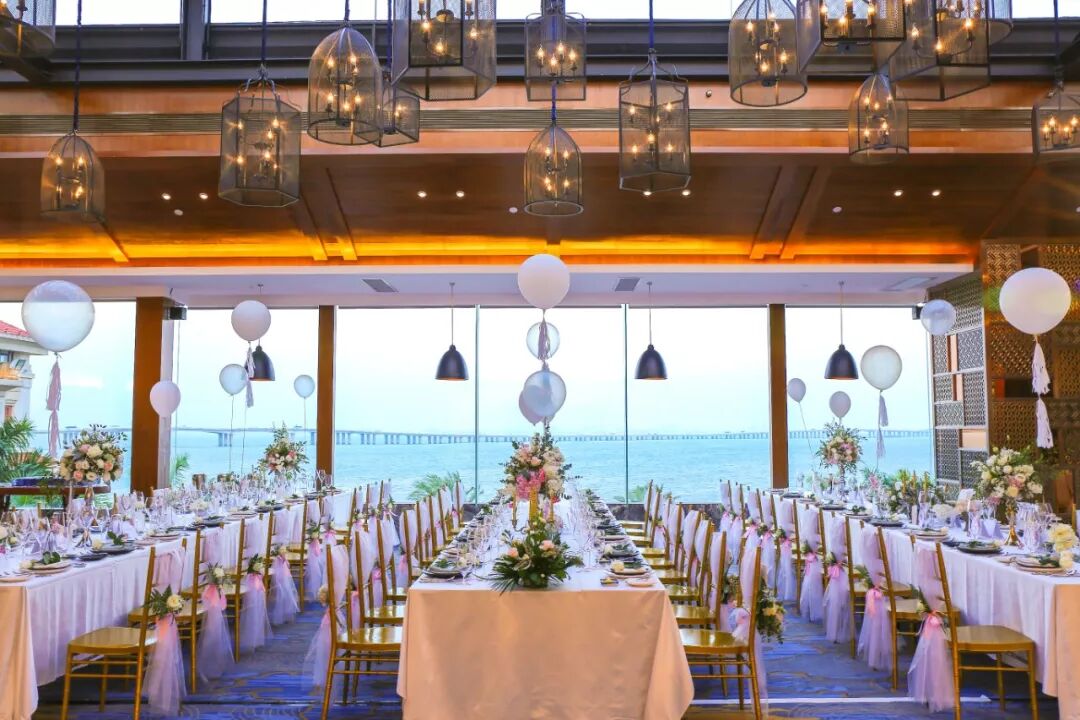 V吧海景餐厅,全玻璃幕墙设计坐拥北海湾辽阔海景,暖色调风格装横,营造餐厅典雅与时尚的氛围。在光影交错中,聆听菲律宾乐队的动情演唱,享受味蕾与美感的极致。