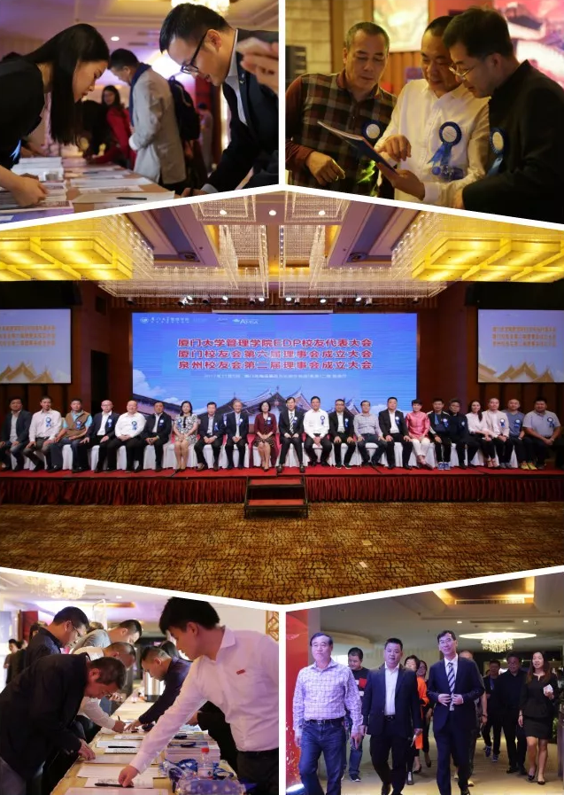 11月5日下午,厦门大学管理学院EDP校友代表大会、厦门校友会第六届理事会成立大会、泉州校友会第二届理事会成立大会暨厦漳泉三地校友会中秋博饼联谊晚会在集美厦门北海湾惠龙万达嘉华酒店隆重举行,厦门大学校友总会秘书长曾国斌先生、厦门大学管理学院党委书记陈雪玲女士、管理学院EDP中心主任朱平辉教授、副主任陈萍老师、副主任刘端填老师以及来自厦漳泉等各地的EDP校友们出席了大会。