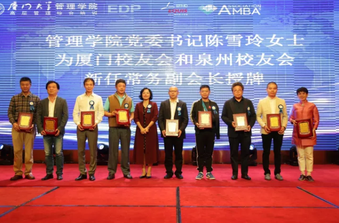 厦门大学管理学院党委书记陈雪玲女士为厦门校友会及泉州校友会新任常务副会长授牌