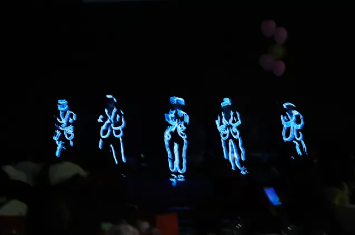 灯光一暗,身着荧光服饰的表演者出场,瞬间吸引了全场的目光,劲爆的音乐,酷炫的舞姿,如此创意十足的表演刷屏朋友圈啦~