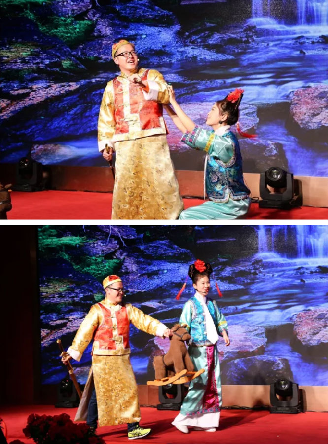 还珠格格之福尔康(销售副总监张智群饰演)与紫薇(传讯总监卢青饰演)情意绵绵,闹了一出“美人负我”的分手戏,最后还是私定终身,一同“策马奔腾”离开,简直让人笑出腹肌了。