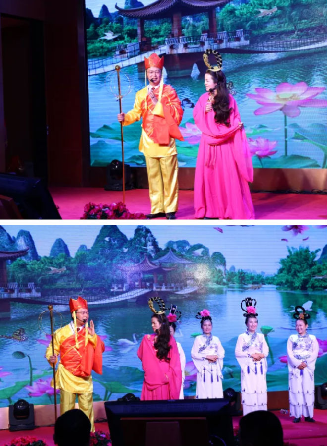 西游记唐僧(总经理文戈饰演)西天取经之路途经女儿国,御弟哥哥一心向佛(美女不够多),婉言辞别女儿国陛下(水疗经理喻少梅饰演),搞怪对话爆笑全场。