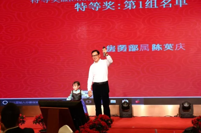 全场最激动人心的时刻来了,今年的特等奖大礼是苹果笔记本电脑,欢呼声,尖叫声一片,最终的结果揭晓,这名幸运的同事,运气很好哦~