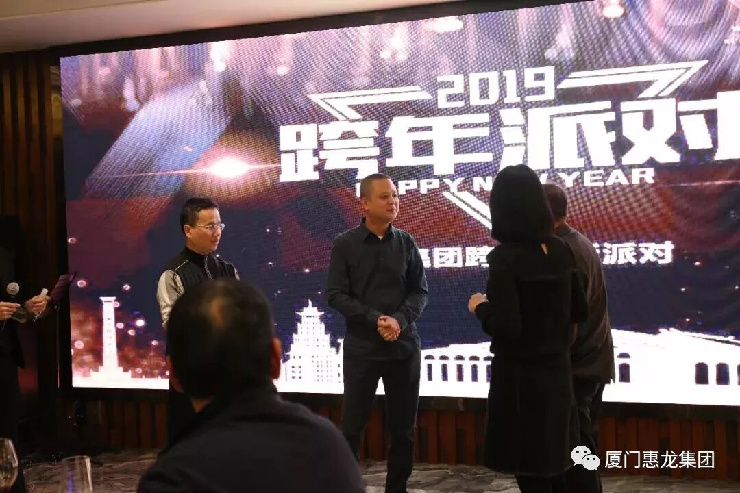 2018年12月31日晚,厦门惠龙集团有限公司“不忘初心,砥砺前行”元旦跨年派对在北海湾惠龙万达嘉华酒店5楼V.bar海景餐厅举行,董事长林文龙先生携集团高管团队,欢聚一堂迎接新年,带着2018的辉煌,共同迎接2019的无限美好!